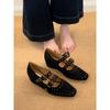 Sheepskin version~ French retro round head rivet one-word buckle Mary Jane shoes women's inner height increase leather shallow mouth single shoes