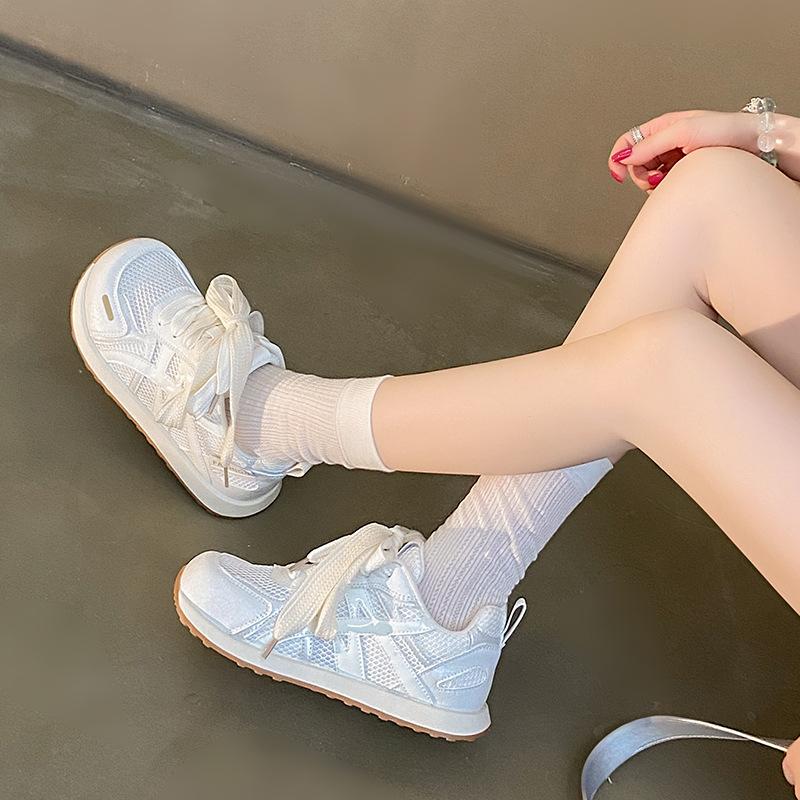 Faux leather mesh breathable moral training shoes women's 2025 spring and summer soft soles are not tired feet flat soles versatile casual Forrest