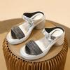 Stepping on shit feeling large size rhinestone slippers women's 2025 new summer wear cool slippers thick-soled high heels one-word drag