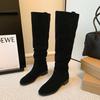 Soft! Round head thick heel women's boots women's but knee gray knight boots women's pile boots cow flip versatile medium heel tide