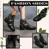 Fashion Fashion Rivets Black Ankle Women Boots Faux Leather Booties Metal Buckle Straps Square Heel Studded Woman Boots Motorcycle Shoes