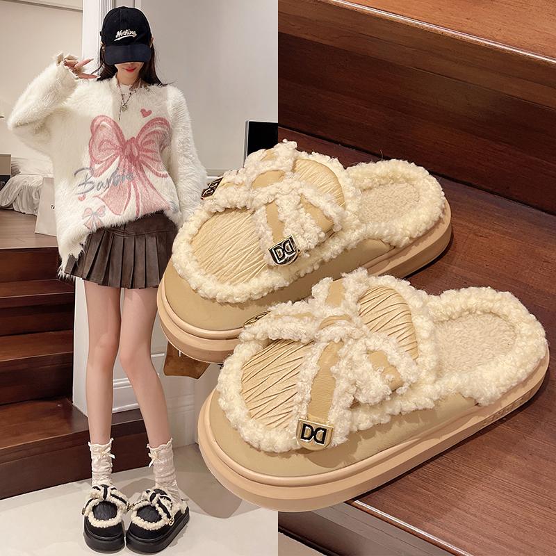 Fashion 2024 NEW Fashion Winter Toe Wrap Warm Cotton Slippers Thick Soft Sole Slides Women Indoor Floor Flat Home Non-slip Shoes