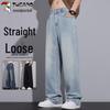 These TUCANO Men's Loose Fit Straight Jeans are perfect for spring and autumn. Designed for comfort with a relaxed, straight wide-leg cut, they feature a natural waist and button fly. Made from a durable blend of cotton, polyester, and regenerated cellulose fiber, they are versatile for casual and outdoor wear.