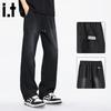 Izzueit Men's Loose Fit Straight Leg Washed Black Denim Jeans