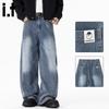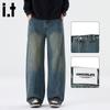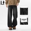 CHOCOOLATEit Men's Raw Denim Curved Wide-Leg Jeans