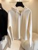 JIU ZI ANNA COU Women's Relaxed Wool Hooded Full-Zip Knit Sweater