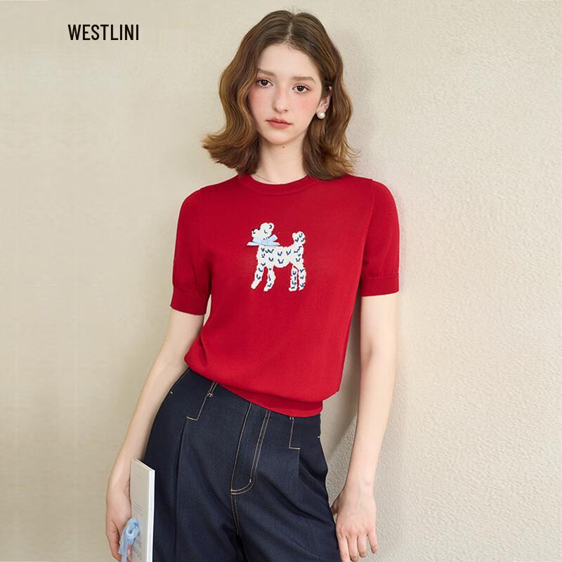 Xiyu Women's Puppy Pattern Short-Sleeve Knit Top