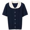 VEROMODA Cotton Blend Colorblock Short Sleeve Knit Cardigan