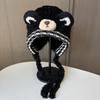 New Cute Bear Knitted Hat for Women in Autumn and Winter Warm Plus Velvet Ear Protection Hat Cold Proof Pullover Woolen Hat