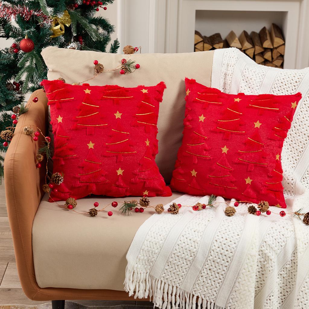 Christmas New Pv Velvet Embroidered Pillow 3D Three-dimensional Christmas Tree Plush Pillowcase Indoor Holiday Decoration Sofa Cushion