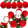 Simulated Rose Ring Box Earring Jewelry Storage Box Wedding Engagement Romantic Gift Decoration Props 3D Red Rose Flower Case