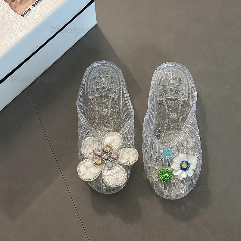 Women's Summer Beach Slippers Transparent PVC Low Heel Slippers Cover Toe Slip on Casual Slides Sandalias De Mujer