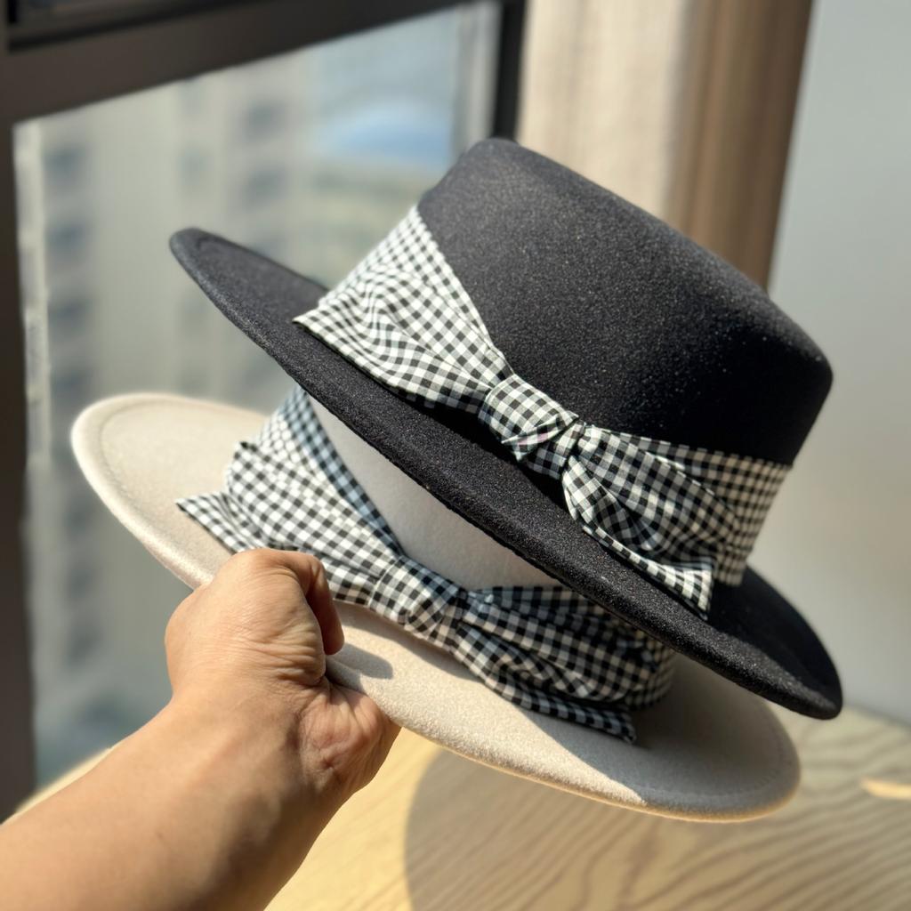 New Light Luxury Fashionable and Elegant Bow Plaid Fisherman Hat for Women in Autumn and Winter Woolen Hepburn Style Fashionable Top Hat for Women