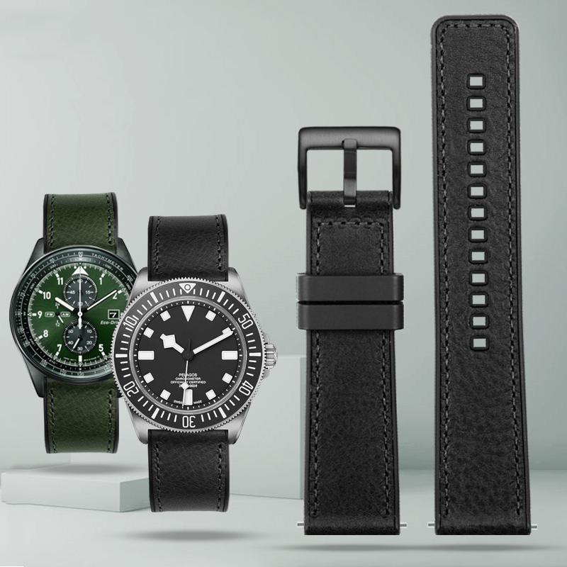 Vintage Italian Leather Watch Band For Seiko Tudor Casio Waterproof Silicone Rubber Bottom Chain Strap Bracelet 20mm 22mm 24mm