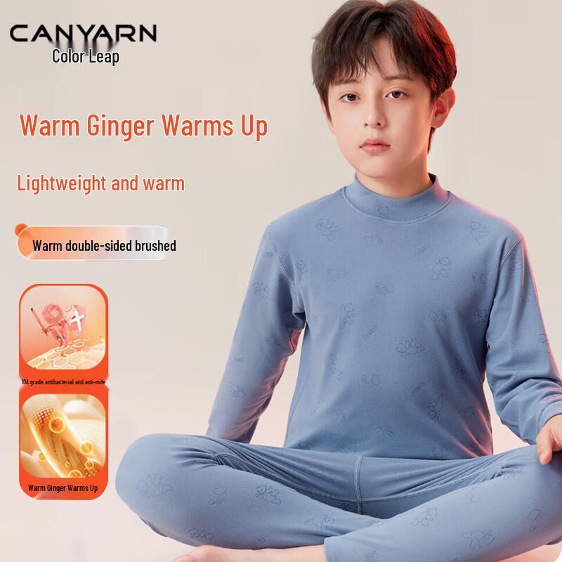 Caiyue Boys' Warm Ginger Double-Sided Fleece Thermal Underwear Set