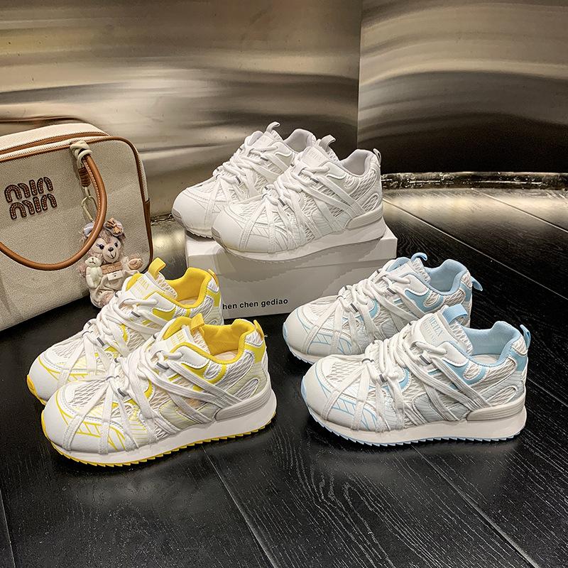 Spider web straps mesh breathable dad shoes girl 2025 spring and summer new design retro platform casual Forrest Gump shoes