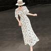 Demana Elegant Watermark Polka Dot Ruffle Sleeve Midi Dress
