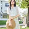 VICTORIA&VERA Summer New Chinese Style Embroidered Faux Two-Piece Cheongsam Midi Dress
