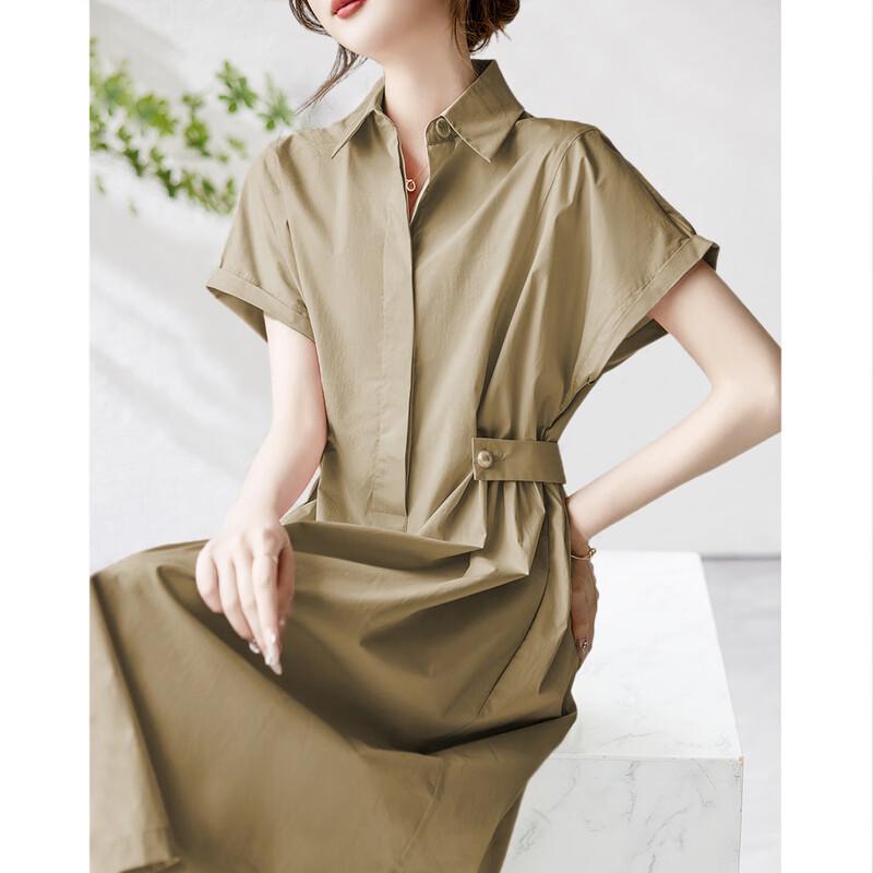 Demana Women's Poplin Cotton Mid-Length Shirt Dress