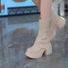 2025 Autumn Winter Women Shoes Leather Short Boots for Women Round Toe Chunky Heel Boots Zipper Ankle Boots Female Platform Heel