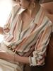 Ladies' Temperament Lapel Contrast Stripe Print Shirt