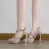 New waterproof table pointed rivets thick heel high heels women's word with sexy nude beautiful versatile high heels