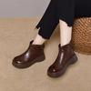 Round Toe Thick Sole Leather Casual Platform Women's Shoes Retro Top Cowhide Ankle Boots Pure Handmade Single Cool Boots