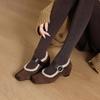Square head fluffy shoes with one pedal, retro velvet to keep warm, Mary Jane small leather shoes, cotton shoes, thick heels, single shoes.