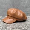 Autumn and Winter Women's Big Head Octagonal Hat Leather Painter's Hat Korean Version PU Large Peaked Cap British Versatile Beret Men's Winter