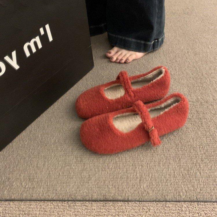 Retro Mori plush wool single shoes women's 2025 autumn and winter new French one-word Mary Jane shoes lamb wool shoes