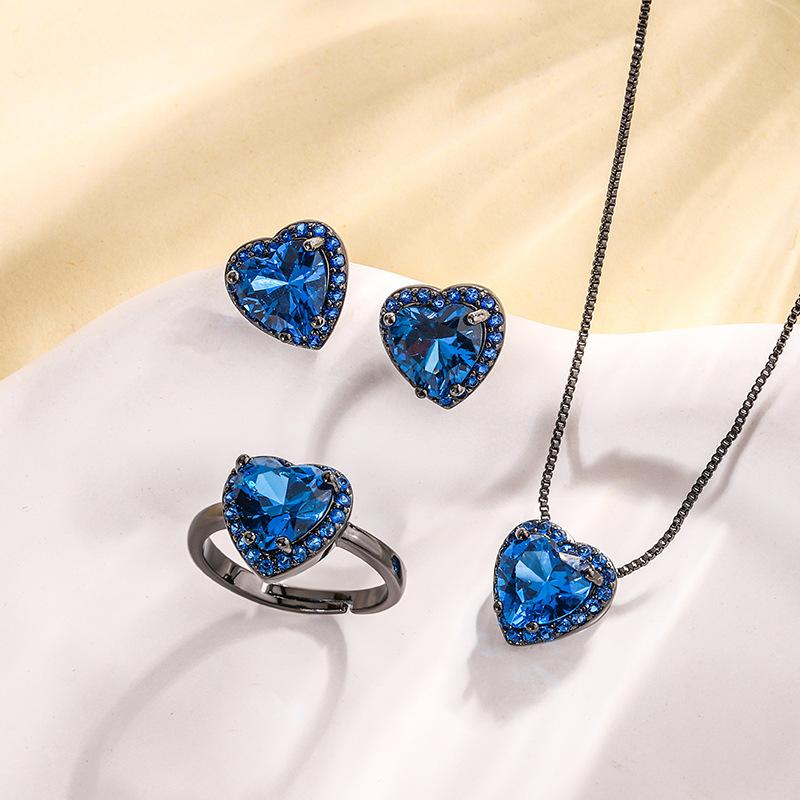 Jewelry Copper Bottom Gold-Plated Simulation Blue Spinel Heart-Shaped Black Gold Set Heroine Stone 9 * 9