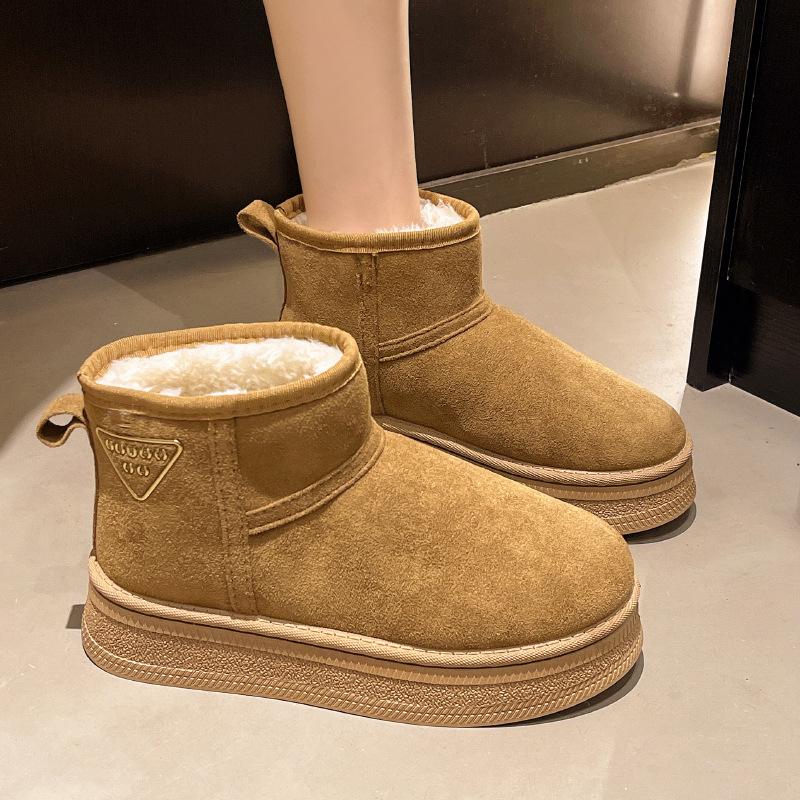 Women's fashion furry mouth thick sole lightweight winter warm snow boots plush lining non-slip wear-resistant casual outdoor sports cotton boots