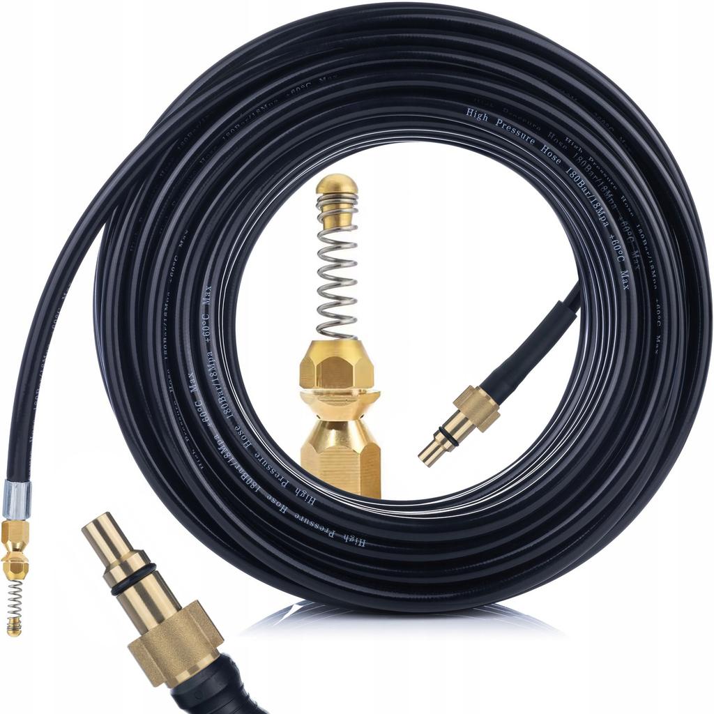 WĄŻ DO KANALIZACJI 30 M | ZŁĄCZE LAVOR/PARKSIDE/KANWOD | DYSZA SPRĘŻYNOWA MOSIĘŻNA