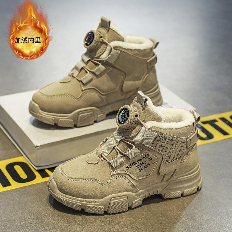 Boys and girls Martin boots with cotton winter new middle and older children's snow boots with velvet warm high-top children's cotton shoes