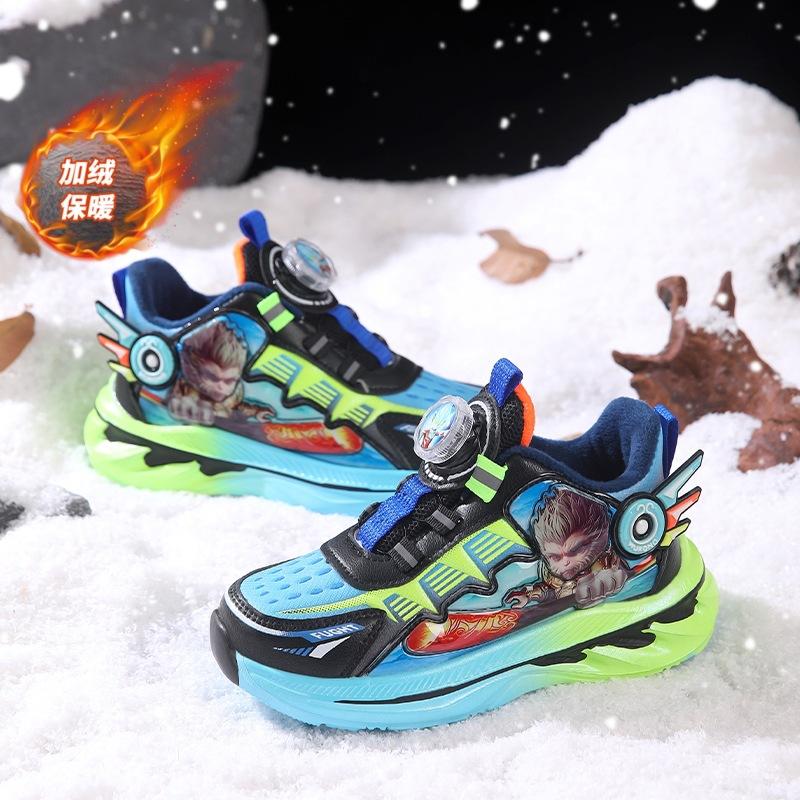 Boys' sports shoes autumn and winter new children's rotating button running shoes velvet cotton shoes primary school boys basketball shoes