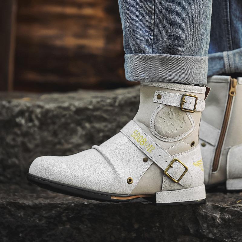 High Quality Men's Boots Retro Handmade Leather Boots Casual Ankle Booties Men Motorcycle Boots Punk Boot Western Cowboy Booties