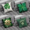 St. Patrick's Day Four-leaf Clover Printed Linen Pillow Cover Festive Home Fabric Sofa Bedside Cushion