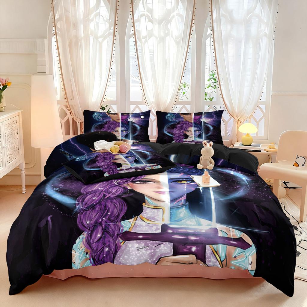 3pcs K-Pop Demon Hunters printed coreless down comforter set, multi size bedroom bedding decoration, soft and machine washable