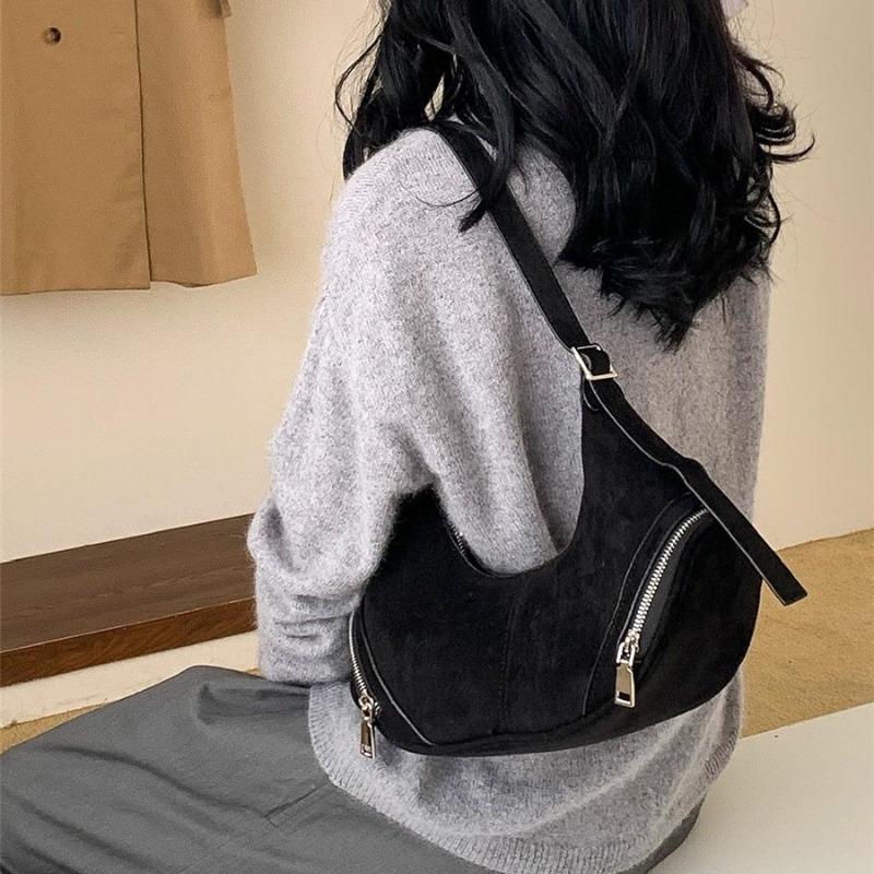 Suede bag autumn women's new pillow bag women's retro texture plush shoulder armpit bag women