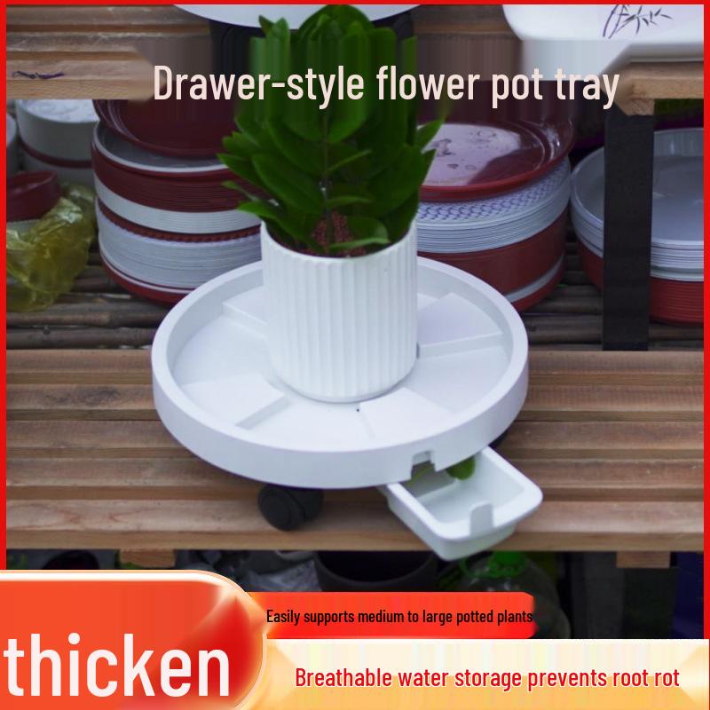 Round Plastic Rolling Flower Pot Tray with Drainage and Water Collection