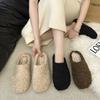 Wool version of bag head, lazy people pedal half-drag fluffy shoes on one foot, women wear flat-bottomed warm and piled thickened cotton shoes in autu