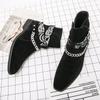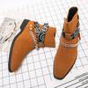 European and American fashion short boots men's large size western cowboy leather boots black buckle high-top pointed leather shoes