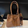 Vintage tote bag large capacity women's armpit bag 2025 new simple suede shoulder bag fashionable commuter bag