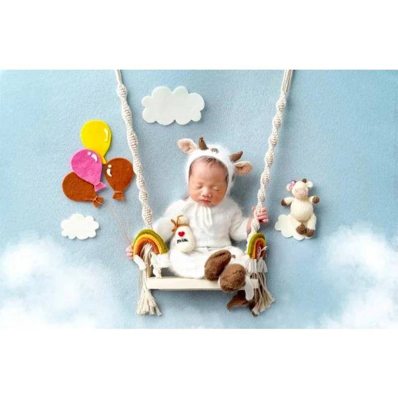 Vintage Wooden Macrame Swing Newborn Photography Prop Soft Photo Shooting Chair Babies Infants Essential Fotografia Accessories