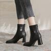 Autumn and winter women's leather boots high heel large size women's boots zipper leather low tube student square head versatile cowhide short boots