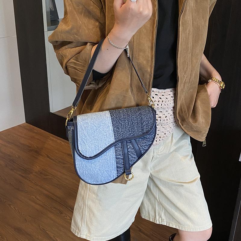 Bag women's bag new fashion often shoulder bag trendy texture messenger bag niche contrasting color splicing saddle bag
