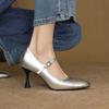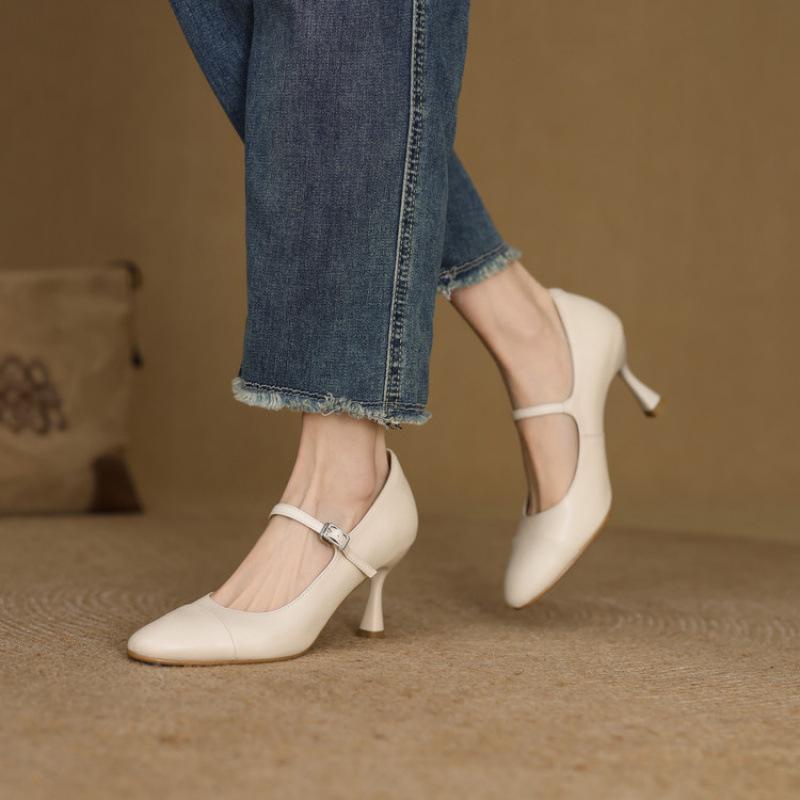 New leather large size shallow mouth low top four seasons wear small leather shoes fashion single shoes round head beef tendon sole high heels stilett