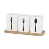 Kitchen Utensils Holder with Compartments Rustic Farmhouse Wooden Cutlery Silverware Holder for Home Pantry Party Restaurant