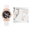 Saatin yanı sıra kolye, bilezik, yüzük ve bir çift küpenin de yer aldığı bu set, takı ihtiyaçlarınız için eksiksiz bir paket haline geliyor. Set günlük kullanım için su geçirmezdir ve ince işçiliğe sahiptir, bu da onu her türlü kıyafete mükemmel bir katkı haline getirir.