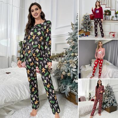 Kadın Pijama Takımı Sonbahar Kış 2 Parça Ev Giyim Takımı Uzun Kollu Üst ve Pantolon Bol Pijama Takımı Noel Temalı Uyku Giyim